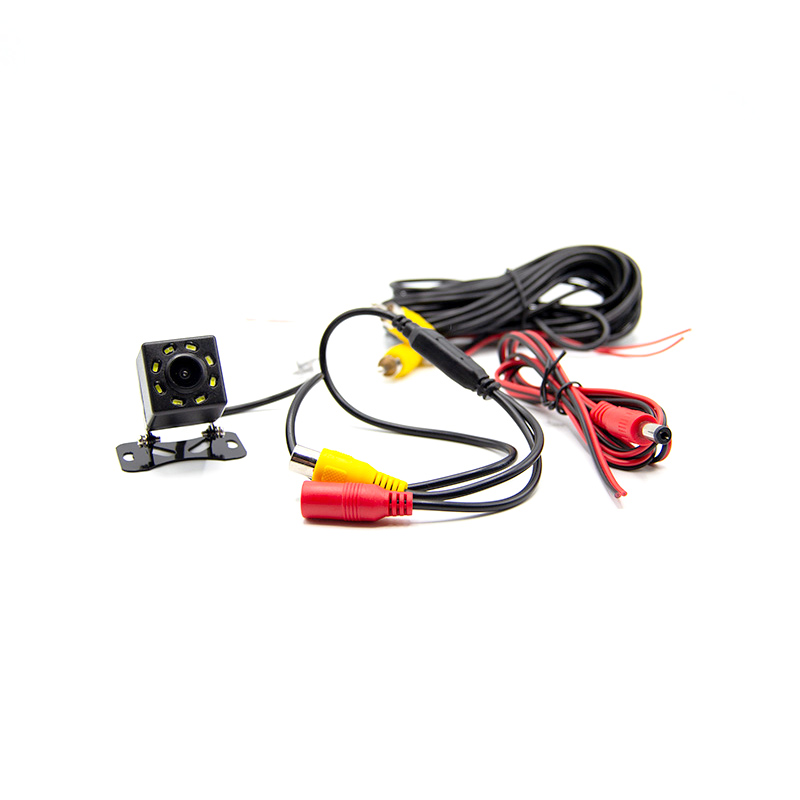 Cámara de visión trasera universal de ayuda al aparcamiento a color con visión nocturna mediante leds. Con base atornillable y regulación de posicion manual. Con líneas de guía de seguridad fijas.