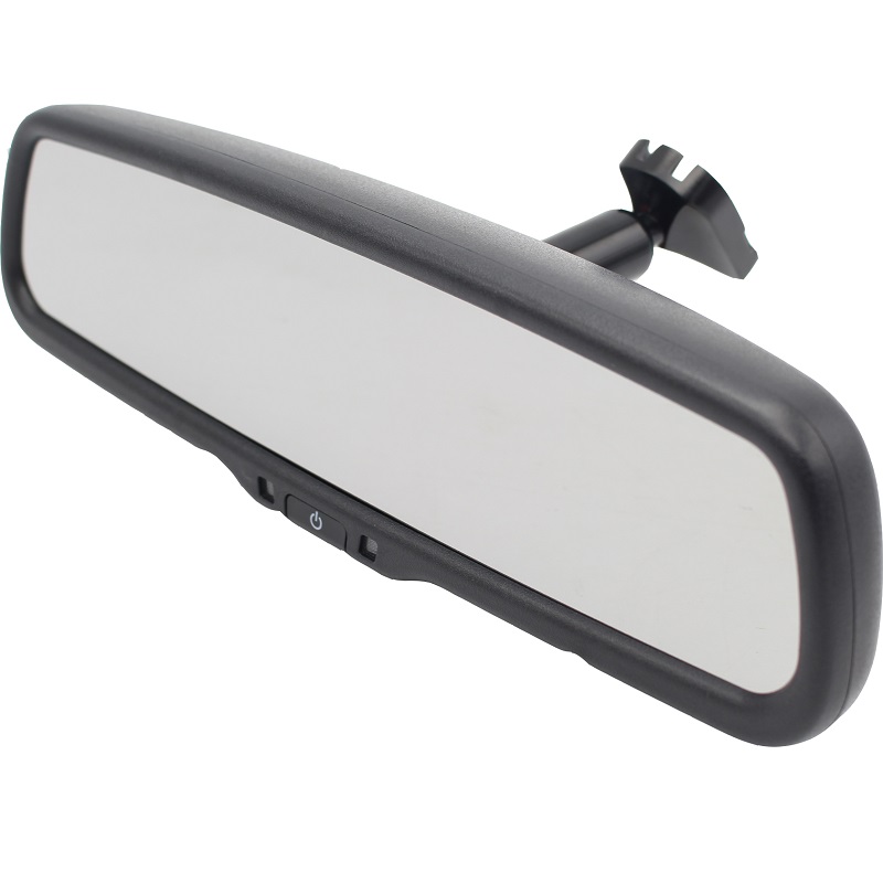 Retrovisor central de sustitución con pantalla integrada con dos entradas de video RCA para visualizar cámara trasera o cualquier otro dispositivo de forma cómoda e integrada.