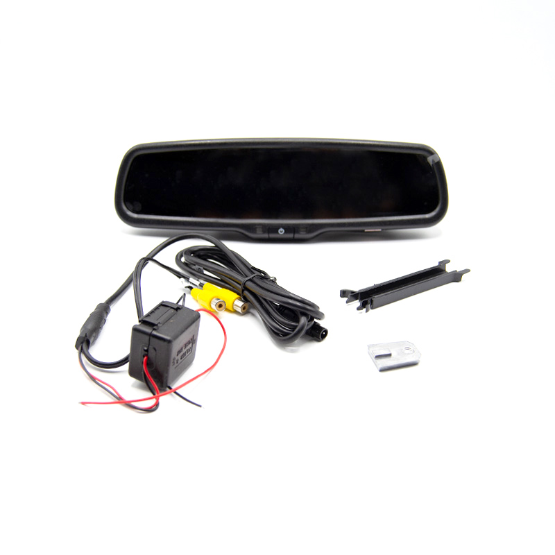 Retrovisor central de sustitución con pantalla integrada con dos entradas de video RCA para visualizar cámara trasera o cualquier otro dispositivo de forma cómoda e integrada.