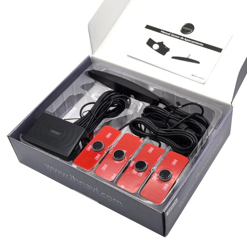 Sistema sensor de aparcamiento delantero con 4 sensores tipo VIP adhesivos interiores sin ningún relieve visible. Aptos para cuando el vehículo equipa ya sensor de parking trasero.