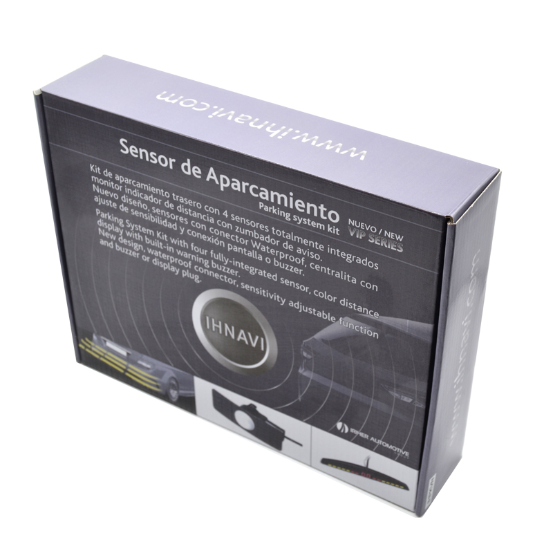 Sistema de sensores de aparcamiento trasero con 4 sensores tipo VIP de nueva generación adhesivos por el interior del paragolpes, quedando completamente a ras sin ningún relieve. Color Negro.