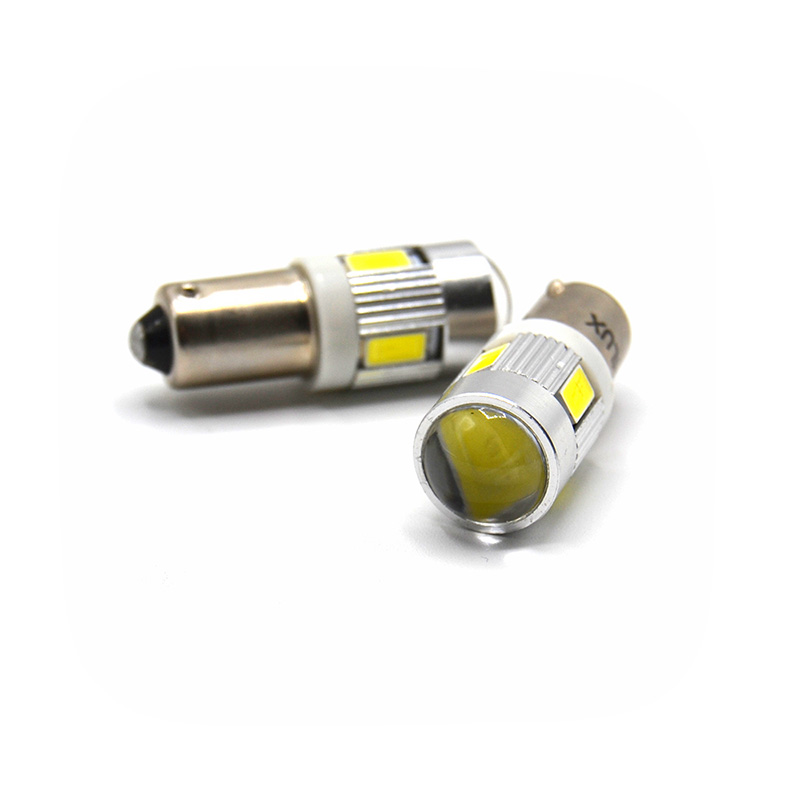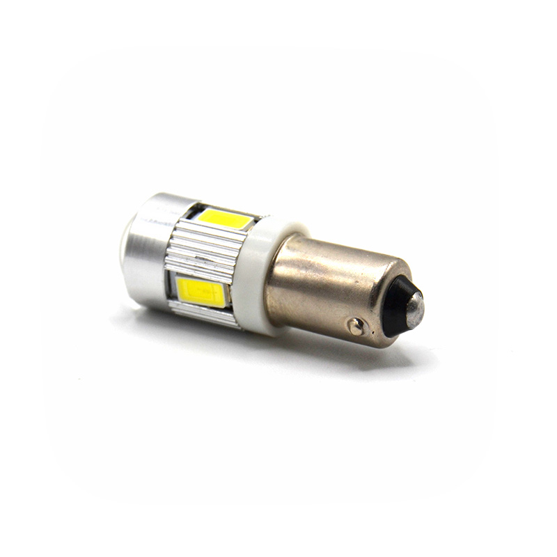 Bombilla LED de tipo BA9S con casquillo de polos alineados con 6 leds SMD de chip 5630 en orientación 360 (uno frontal y cinco laterales).