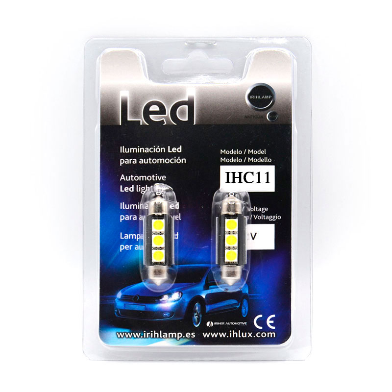 Bombilla LED de tipo C5W / Festoon longitud 36mm con 3 leds SMD de chip 5050.