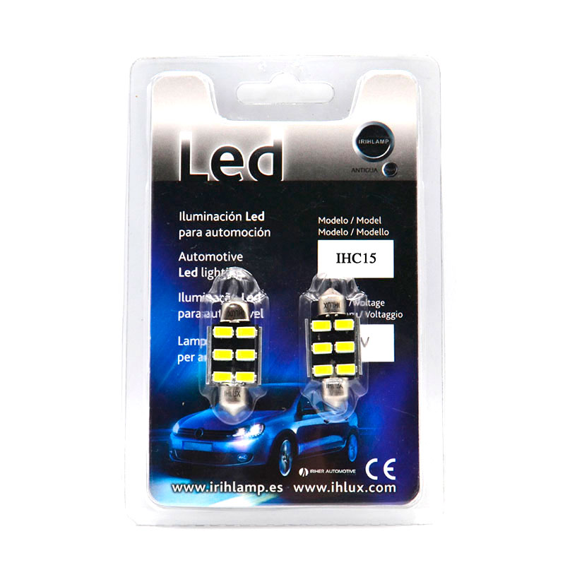 Bombilla LED de tipo C5W / Festoon longitud 36mm con 6 leds SMD de chip 5630.
