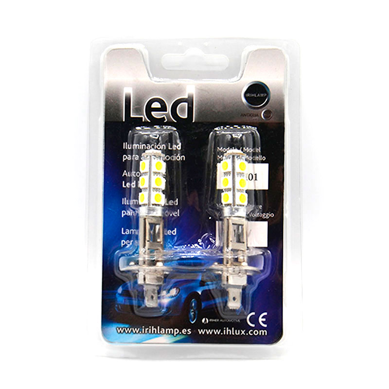 Bombilla LED de tipo H1 con 13 leds SMD de chip 5050 en orientación 360 (uno frontal y doce laterales).