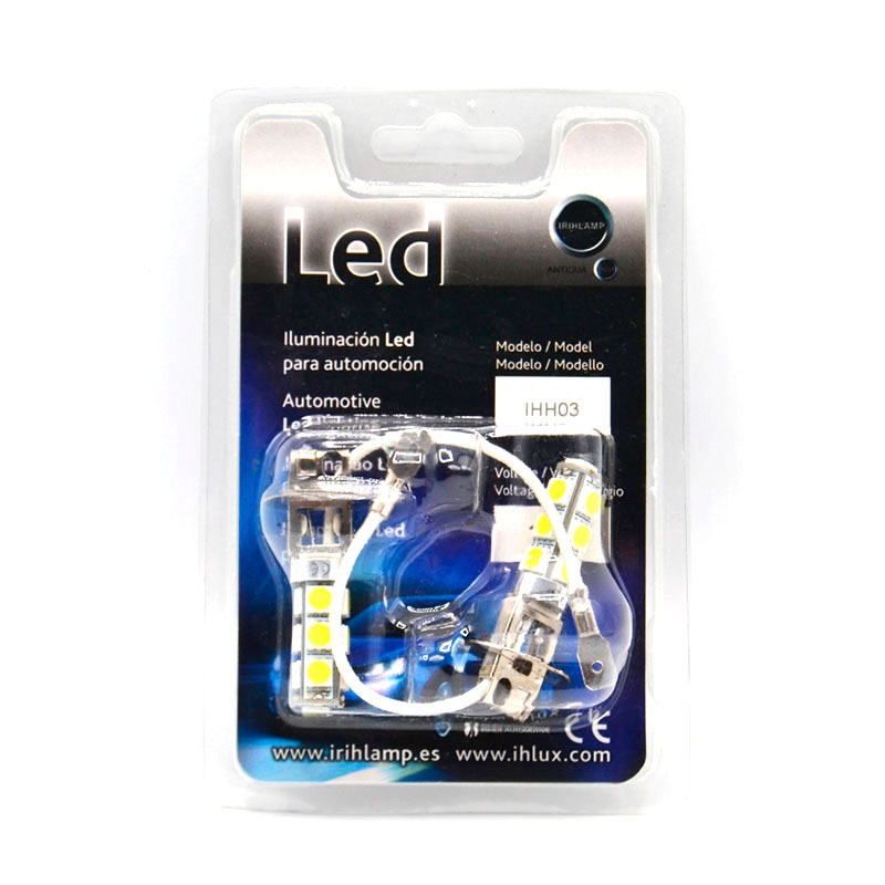 Bombilla LED de tipo H3 con 13 leds SMD de chip 5050 en orientación 360 (uno frontal y doce laterales).