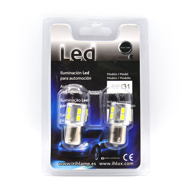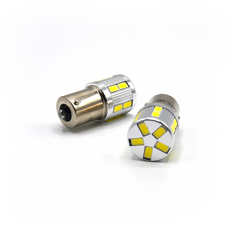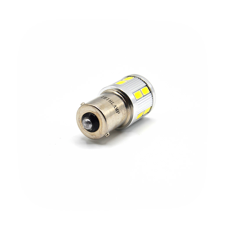 Bombilla LED de tipo P21W un polo con casquillo de tetones alineados con 17 leds SMD de chip 5630 en orientación 360 (cinco frontales y doce laterales).