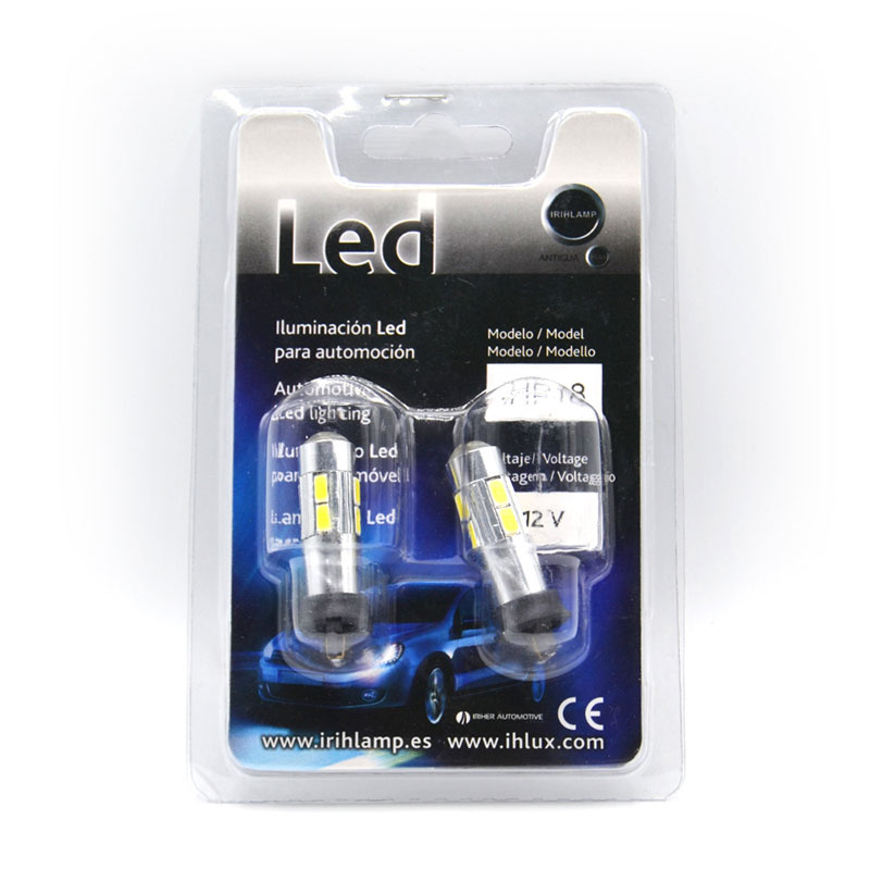 Bombilla IRIHLAMP LED de tipo PW24W con 9 leds SMD de chip 5050 en orientación 360 (uno frontales y ocho laterales).