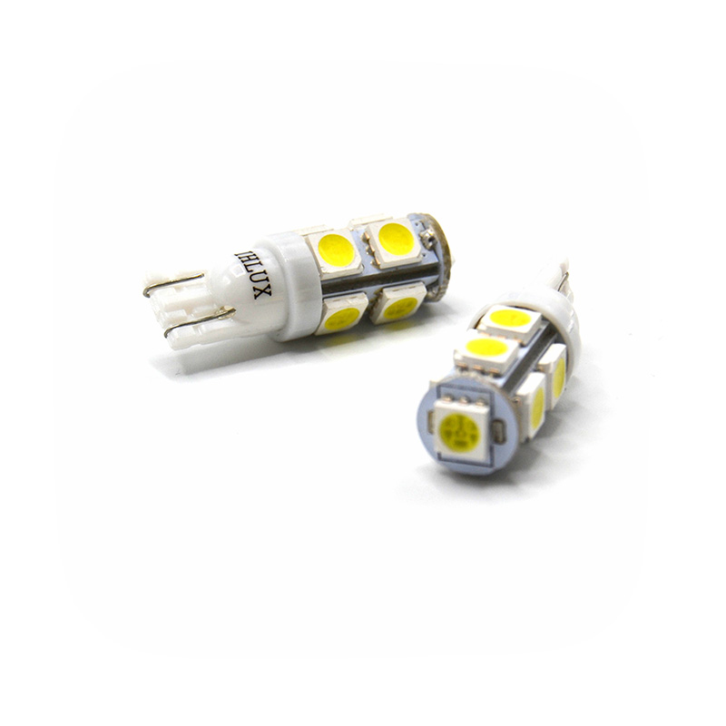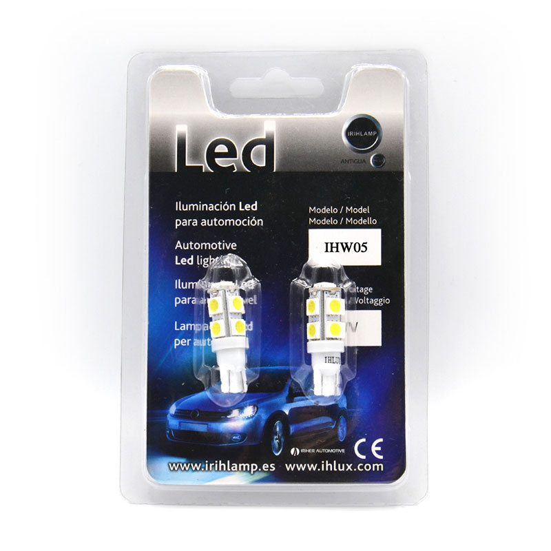 Bombilla LED de tipo W5W / T10 con 9 leds SMD de chip 5050 en orientación 360 (uno frontal y ocho laterales).
