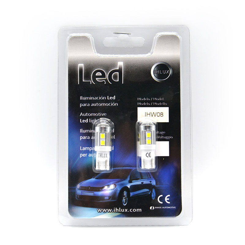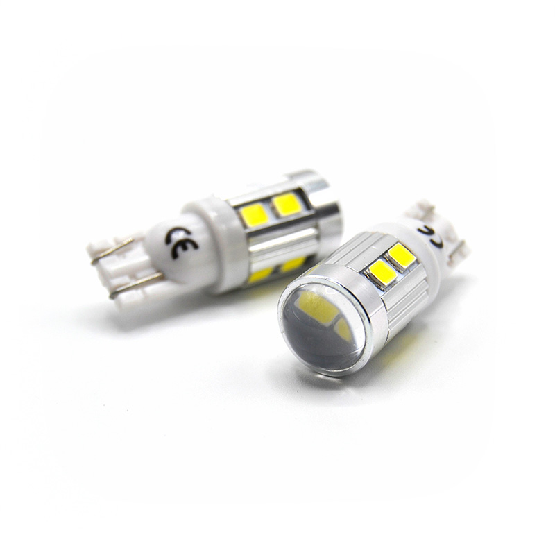 Bombilla LED de tipo W5W / T10 con 10 leds SMD de chip 5630 en orientación 360 (uno frontal y nueve laterales).