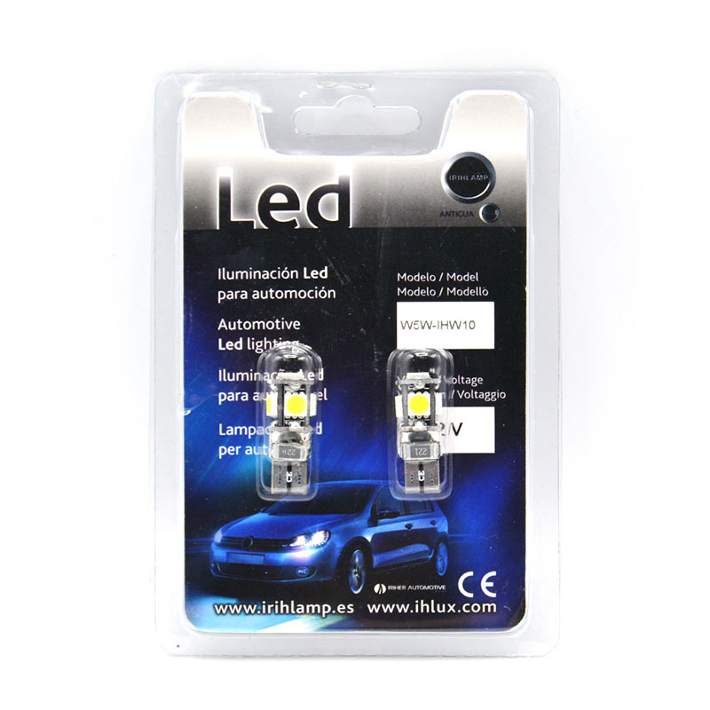 Bombilla LED de tipo W5W / T10 con 5 leds SMD de chip 5050 en orientación 360 (uno frontal y cuatro laterales).