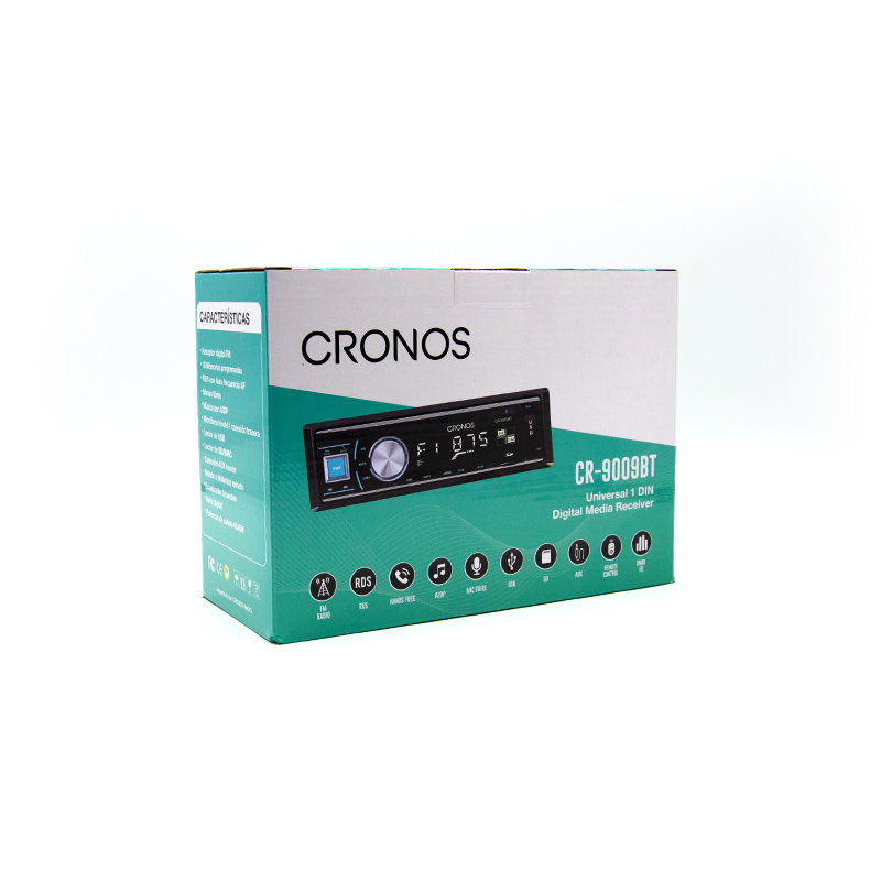 Radio universal 1DIN Cronos CR-9009BT. Compatible con cualquier vehículo de conexión ISO, Radio FM/AM con RDS, conexión USB, Bluetooth y entrada AUX.Incluye fajín de fijación.