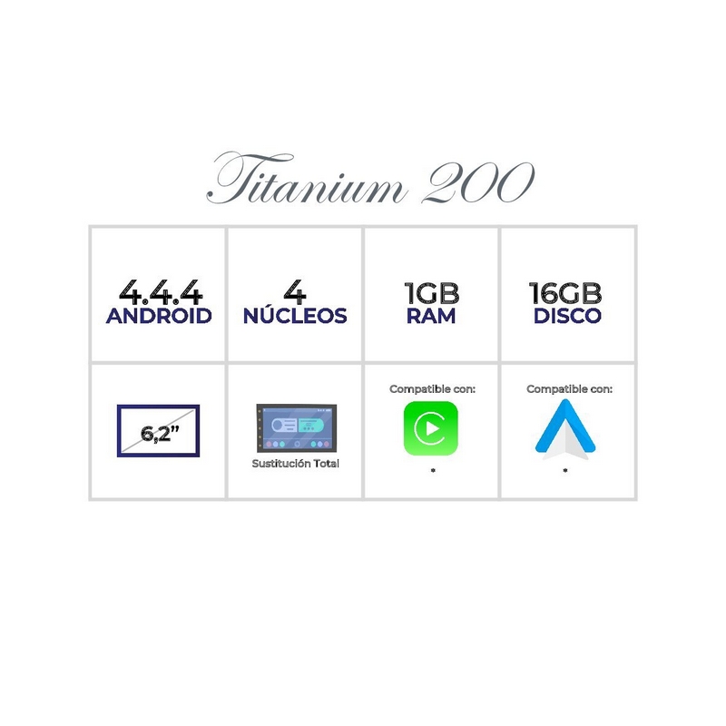 Plataforma Titanium 200: Android 4.4.4, 4 Core con 1 GB de RAM y 16 GB de ROM / Disco Duro. Primer fabricante con Hardware de primeras marcas.