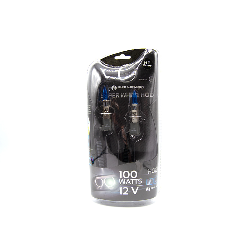 Bombillas halógenas H1 de 100w de potencia, de luz ultra blanca con reflejos azulados de aspecto tipo Xenon. Tipo super white. Tecnología HOD que exprime la máxima potencia de las bombillas halógenas, con una luz de máxima intensidad y potencia lumínica para necesidades de luz extremas.