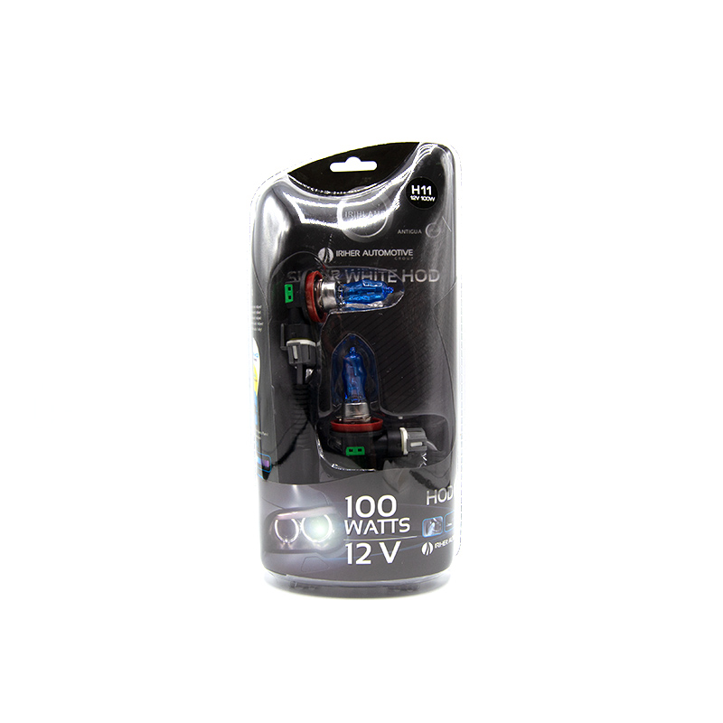 Bombillas halógenas H11 de 100w de potencia, de luz ultra blanca con reflejos azulados, de aspecto tipo Xenon. Tipo super white. Tecnología HOD QUE exprime la máxima potencia de las bombillas halógenas, con una luz de máxima intensidad y potencia lumínica para necesidades de luz extremas.