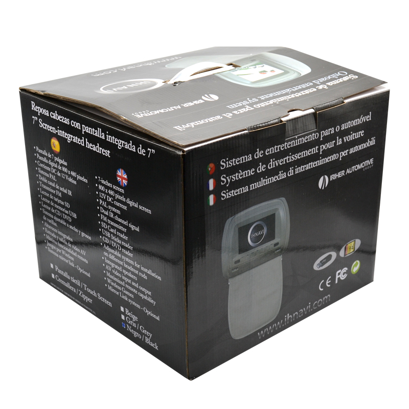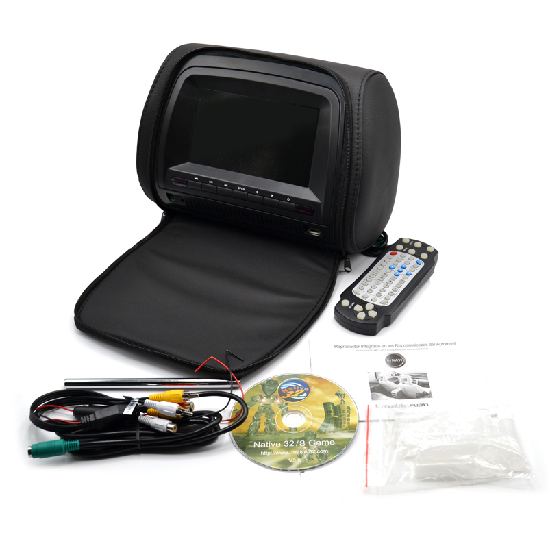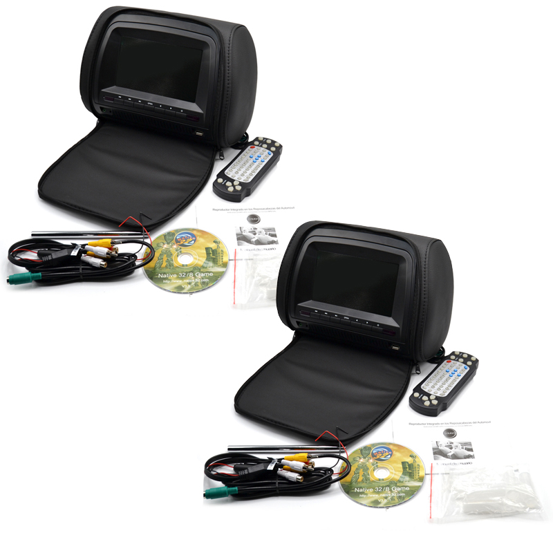 Pareja de reposa cabezas / cabeceros integrales con pantalla TFT digital integrada de 7" y reproductor de DVD integrado, USB, SD.