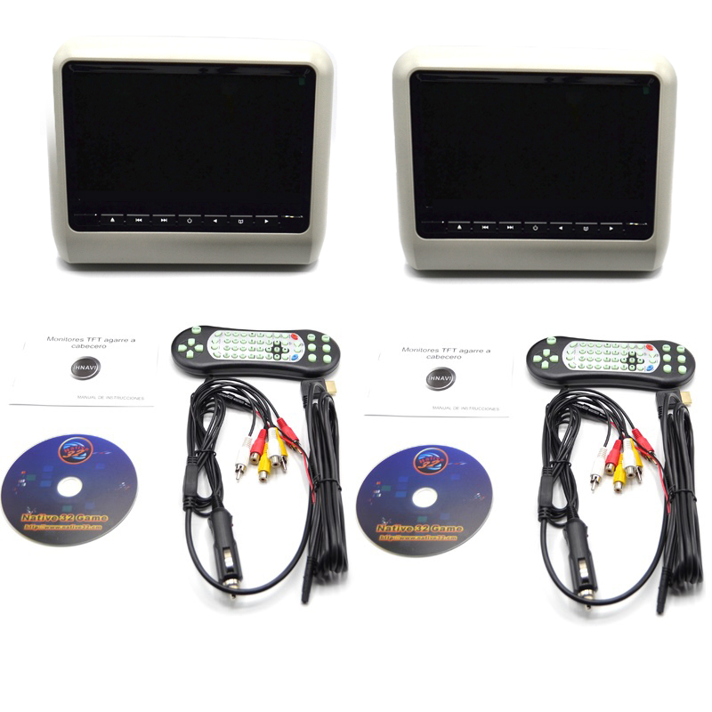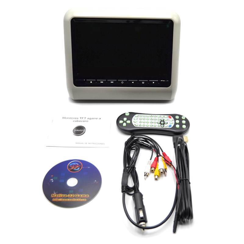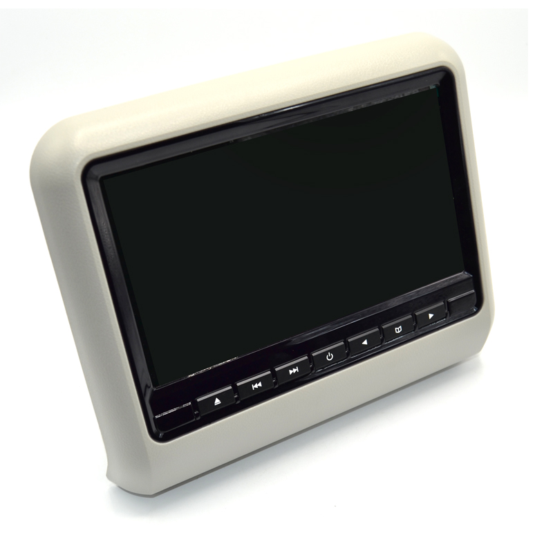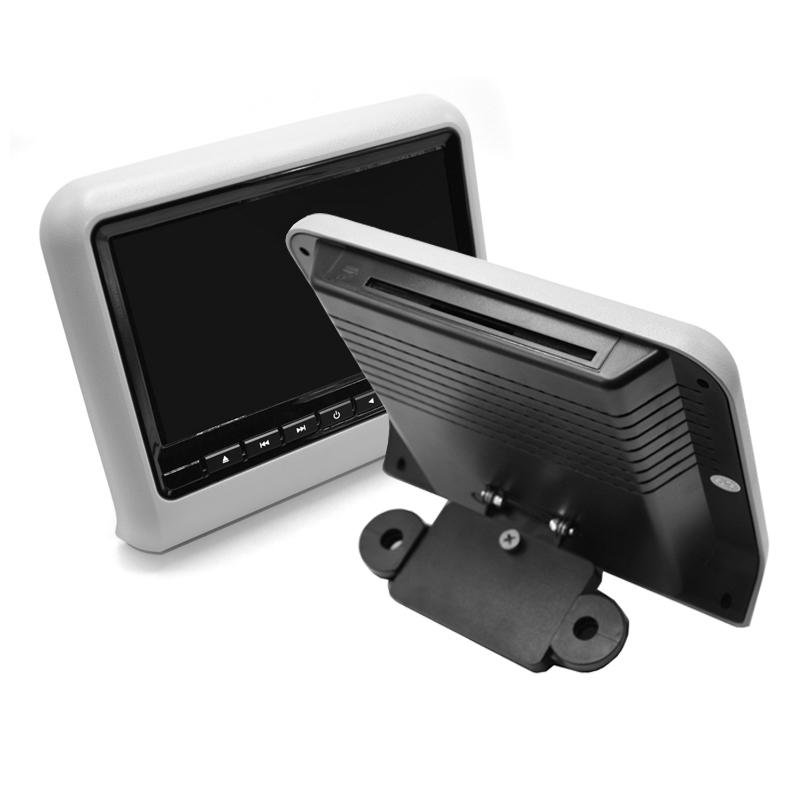 Pareja de monitores de agarre a cabecero con pantalla TFT digital integrada de 9" y reproductor de DVD integrado, USB, SD y HDMI.