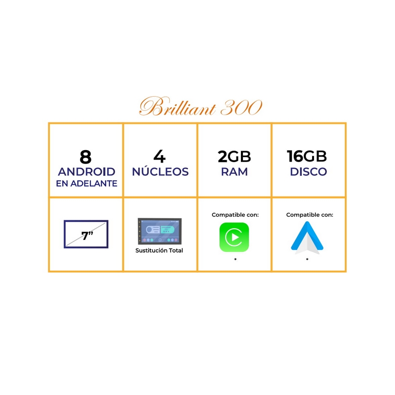 Plataforma Brilliant 300: Android 8, 4 Core con 2 GB de RAM y 16 GB de ROM / Disco Duro.