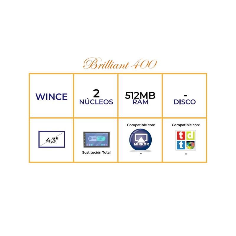 Plataforma Brilliant 100: Sistema WINCE 6.0 con Dual Core y 512MB de RAM. Plataforma muy ágil y estable.
