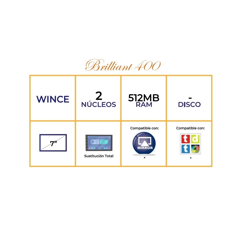 Plataforma Brilliant 100: Sistema WINCE 6.0 con Dual Core y 512MB de RAM. Plataforma muy ágil y estable.