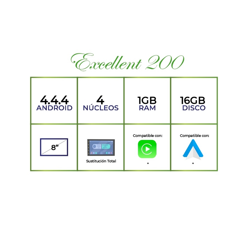 Plataforma Excellent 200: Android 4.4.4, 4 Core con 1 GB de RAM y 16 GB de ROM / Disco Duro. Primer fabricante con Hardware de primeras marcas.