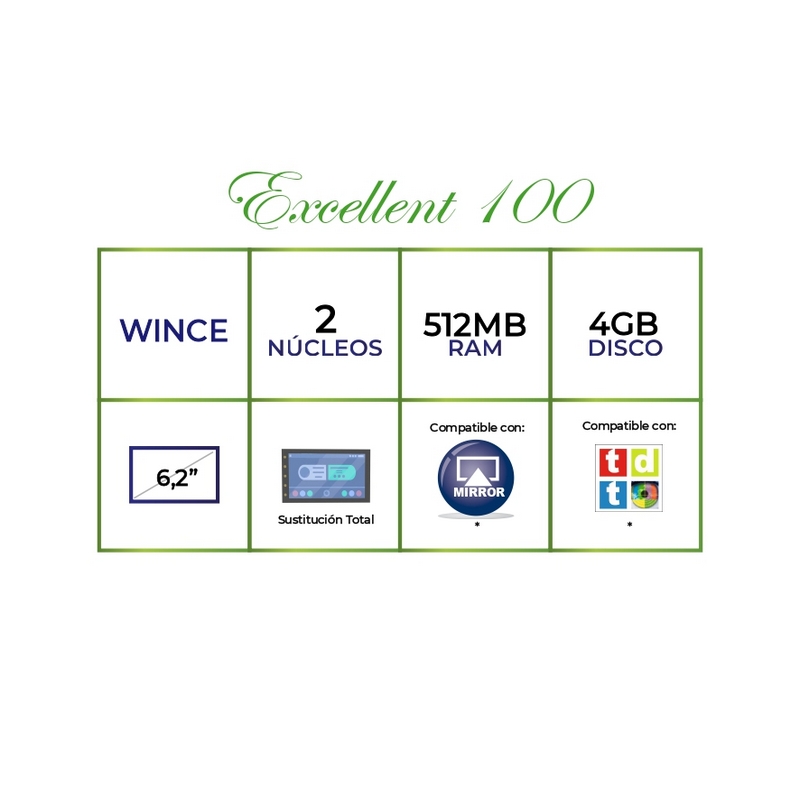Plataforma Excellent 100: Sistema WINCE 6.0 con Dual Core, 512MB de RAM y 4GB de disco duro. Plataforma muy ágil y estable. Primer fabricante con Hardware de primeras marcas.