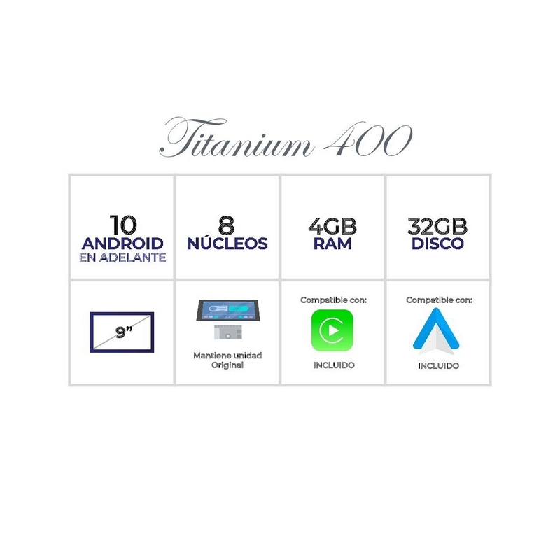 Plataforma Titanium 600: Android (Consultar versión), 8 Core con 8 GB de RAM y 64 GB de ROM / Disco Duro. Incluido Carplay y Android Auto. Primer fabricante con Hardware de primeras marcas.
