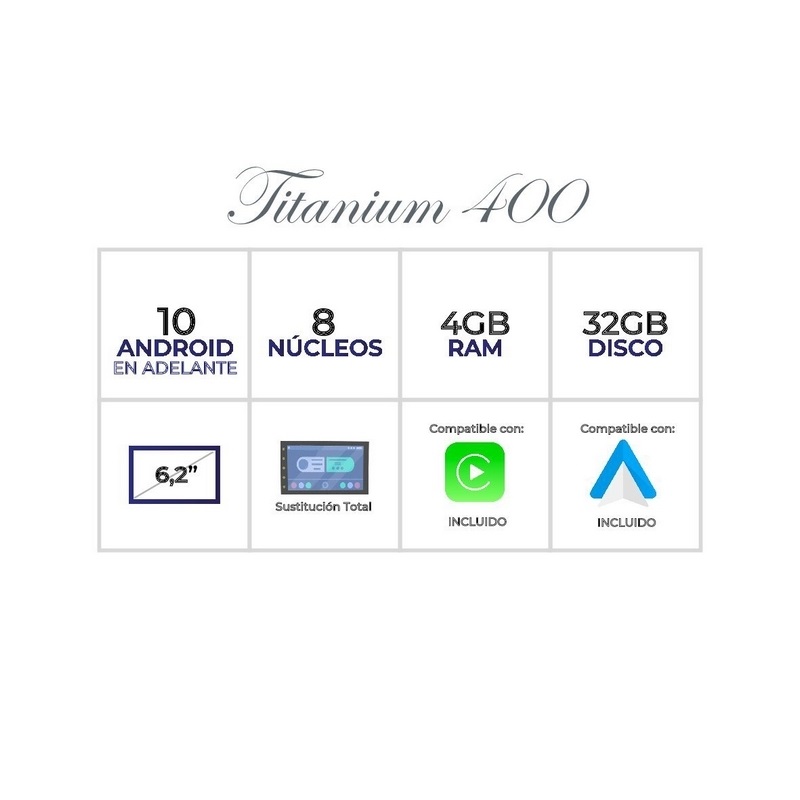 Plataforma Titanium 500: Android (Consultar versión), 8 Core con 4 GB de RAM y 64 GB de ROM / Disco Duro. Incluido Carplay y Android Auto. Primer fabricante con Hardware de primeras marcas.