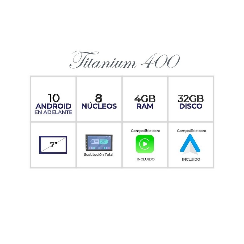 Plataforma Titanium 500: Android (Consultar versión), 8 Core con 4 GB de RAM y 64GB de ROM / Disco Duro. Incluido Carplay y Android Auto. Primer fabricante con Hardware de primeras marcas.