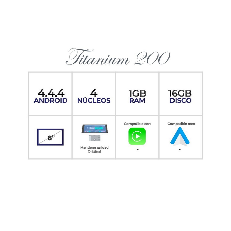 Plataforma Titanium 200: Android 4.4.4, 4 Core con 1 GB de RAM y 16 GB de ROM / Disco Duro. Primer fabricante con Hardware de primeras marcas.